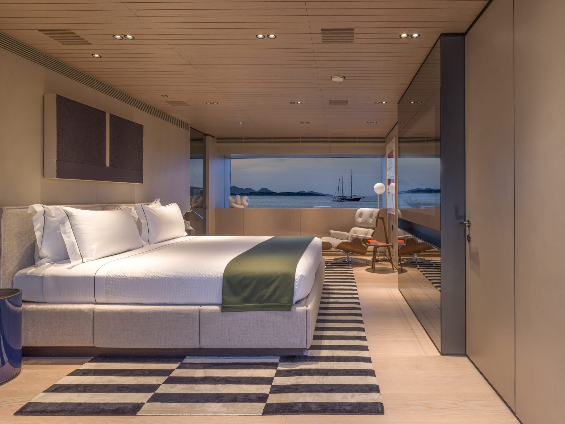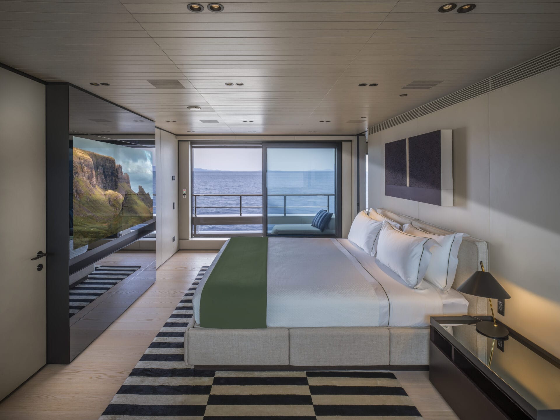 At the heart of the system is a centralised Crestron setup, which controls all AV, lighting, HVAC and blinds via iPads via a unified, intuitive interface for both guests and crew.